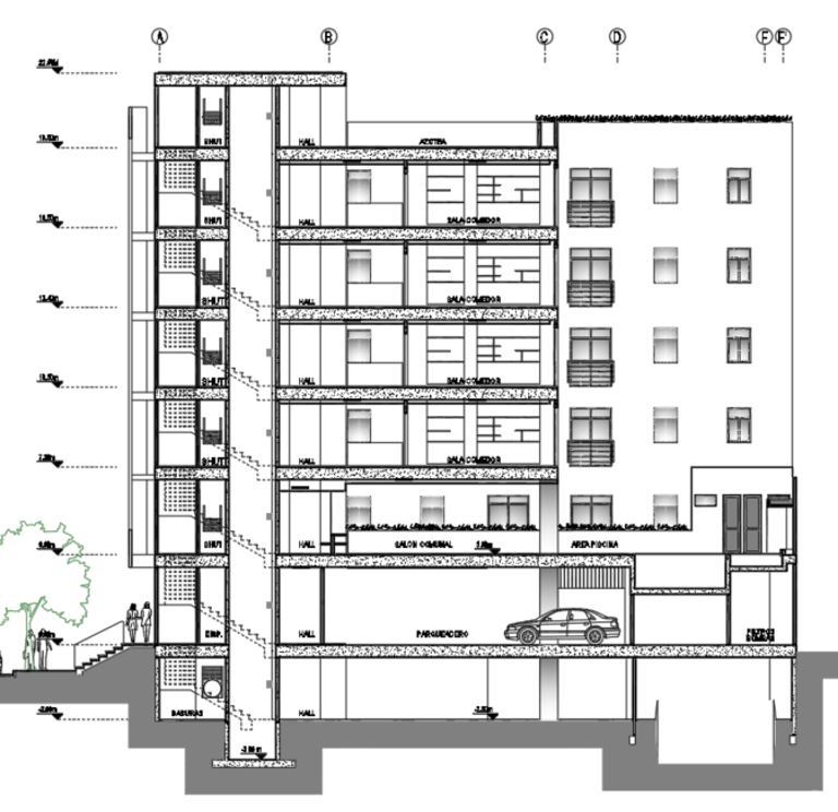 Planos arquitectónicos de edificios residenciales.