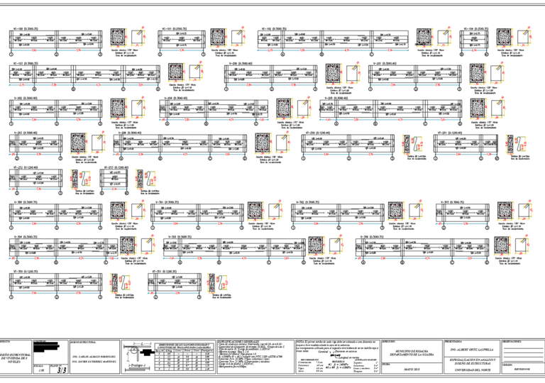 Plano de despiece estructural de vigas y columnas de hormigón.