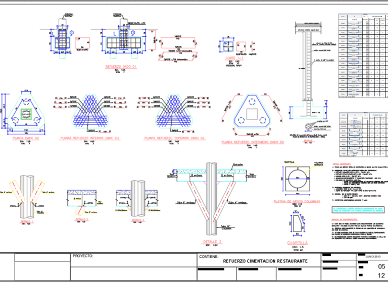 Planos estructurales de cimentación sobre pilotes.